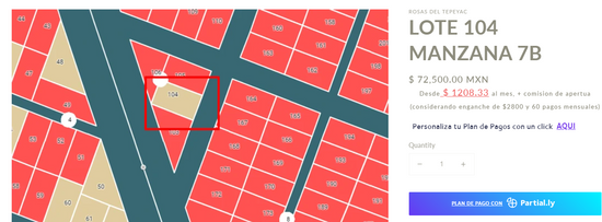 Haz Click aqui o Ve al menú y Selecciona "Catálogo", busca tu lote, revisa sus detalles y escoge el plan de pago que tu quieras