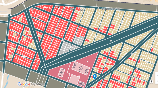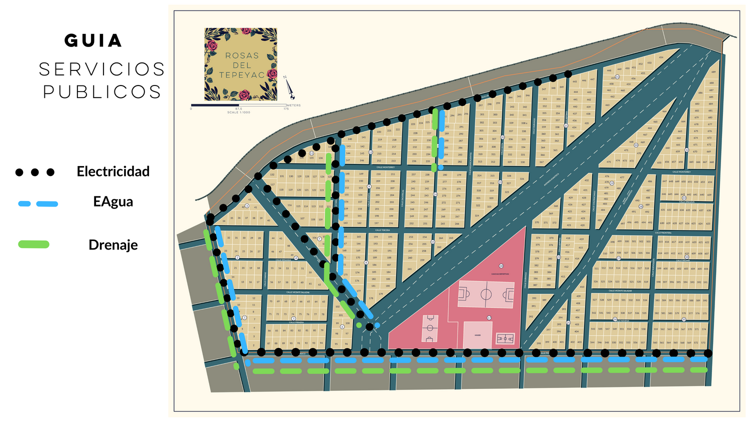 Del Mapa de abajo, localiza el terreno que quieres (Checa que no este en color rojo o gris, revisa el Mapa Guía de servicios públicos disponibles)